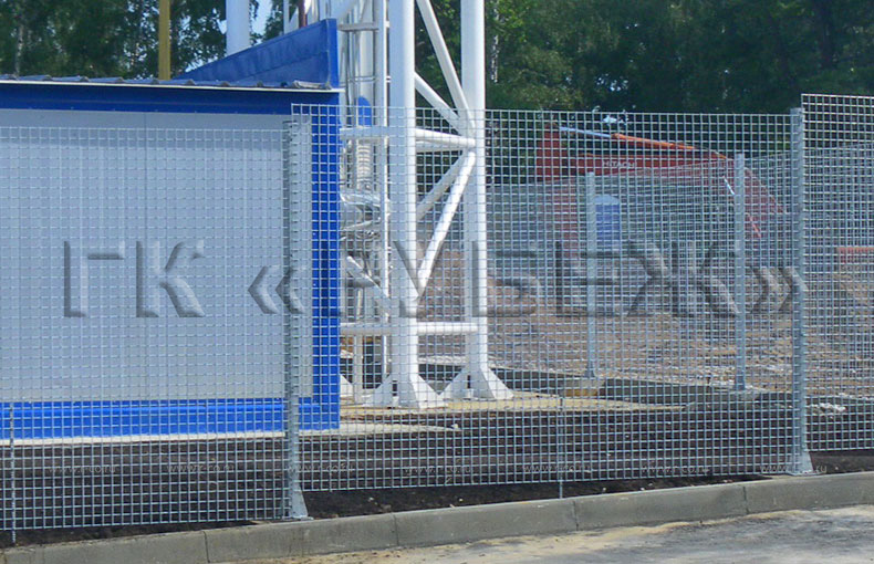 Панели системы ограждений «РБ-П50/50» металлические, оцинкованные, выполнены из сваренных точечной сваркой стальных прутков. Данная система применяется при ограждении промышленных объектов, участков нефтепровода, участков газопровода, а также при организации мест складирования товара, зон погрузки-выгрузки в крупных торговых центрах.