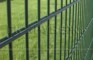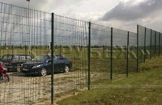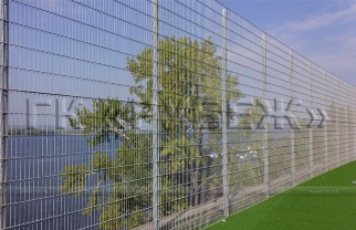 Панели системы ограждений «РБ-2Д» металлические, оцинкованные, выполнены из сваренных точечной сваркой стальных прутков. Верхняя часть оснащена выступающими на 30мм штырями безопасности. Для придания панели повышенной жесткости, горизонтальные прутки выполнены параллельно сдвоенными (2D).