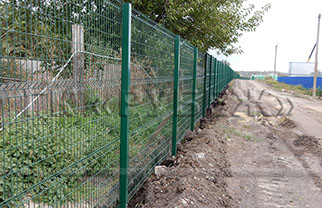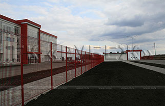 Забор этого типа широко используется при ограждении фабрик, заводов, складских комплексов, животноводческих комплексов, спортивных объектов, парков, супермаркетов и т. д. Панели системы ограждений «РБ-3Д» металлические, оцинкованные, выполнены из сваренных точечной сваркой стальных прутков. Для усиления жесткости на панели имеются горизонтальные 3D (3Д) ребра жесткости в количестве от 2-х до 4-х в зависимости от высоты.