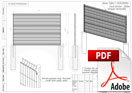 1. Панель оцинкованная «РБ-2Д», 2030х2500мм (ВхШ). Для придания панели повышенной жесткости, горизонтальные прутки выполнены параллельно сдвоенными. Диаметр горизонтальных прутков 2шт. х 6,00мм, вертикальных 5,00мм. Полимерное покрытие: RAL 6005 — темно-зеленый, RAL 7040 — серый, RAL 9016 — белый.